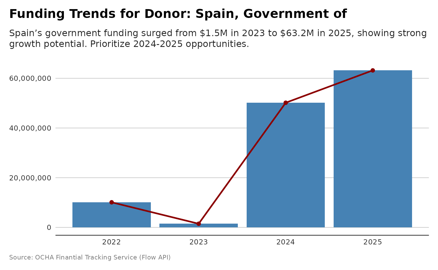 p <- plot_donor_funding_over_time(flows, donor_name= "Spain, Government of")